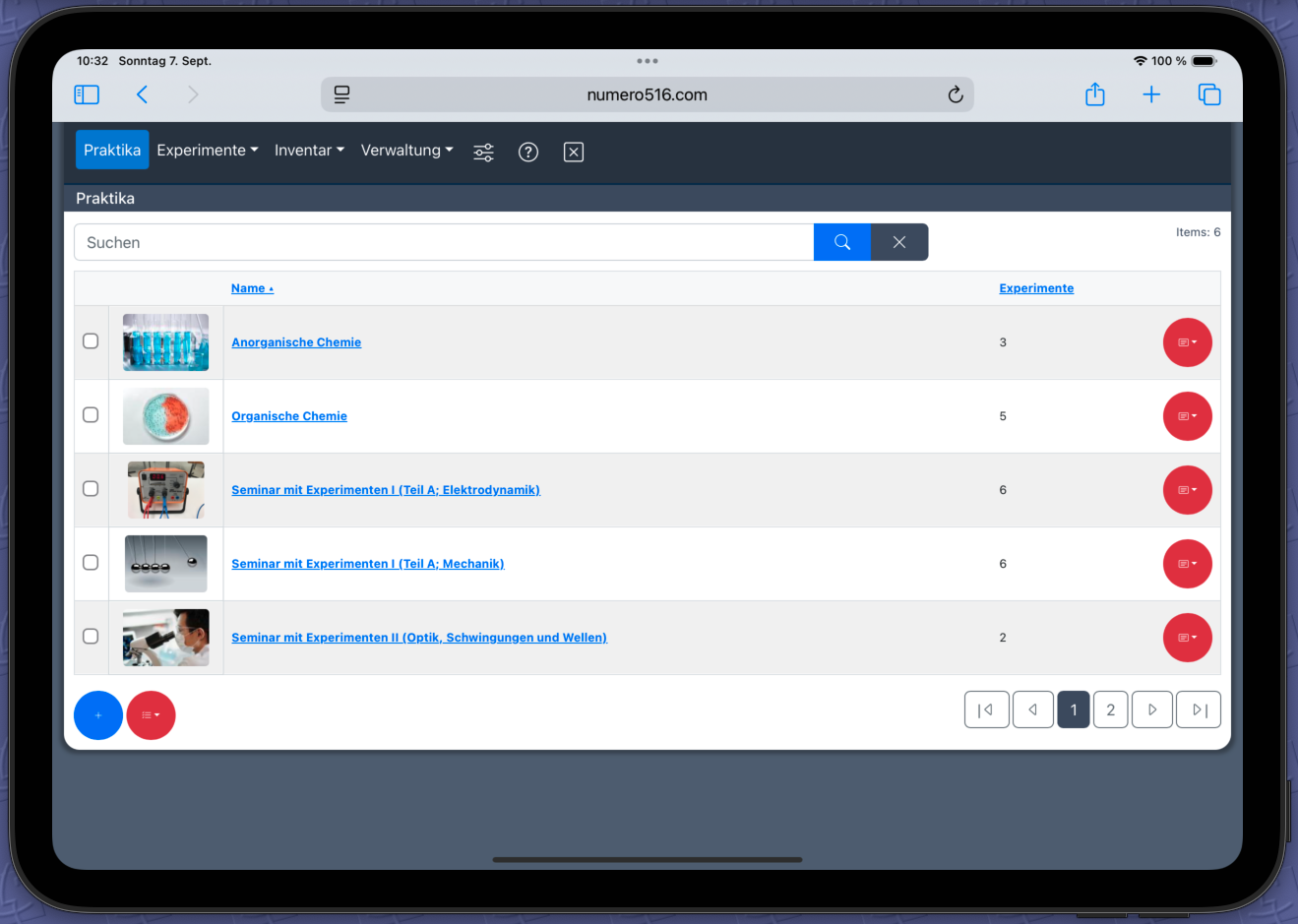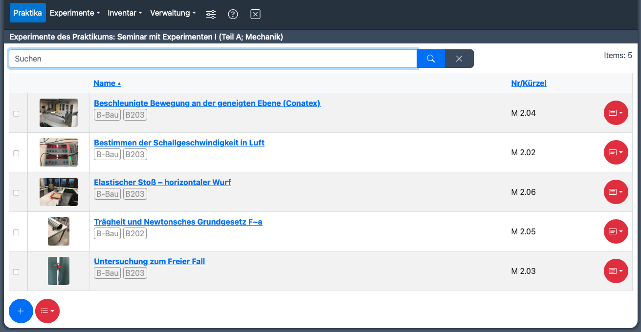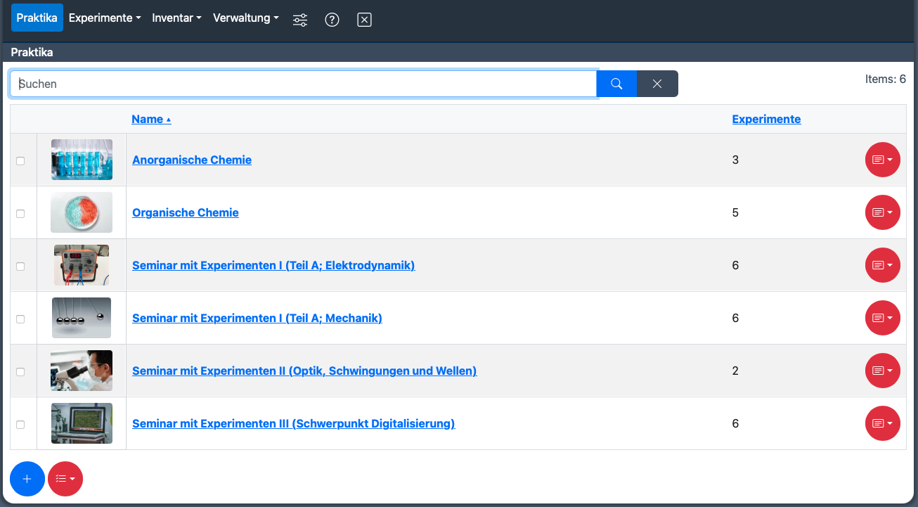 Practicum ist eine leicht zu bedienende Software, die Ihnen eine Übersicht über Ihre Praktika, Experimente und Laborgeräte für den Physik, Chemie, Biologie und Technikunterricht an Hochschulen und Schulen liefert. Dadurch kann die Software Sie (bzw. Ihre Studenten/Schüler) bei der Vorbereitung und Durchführung von Praktika bzw. Experimenten unterstützen. Die Anwender finden alle notwendigen Informationen an einem Ort. Dies trägt nicht nur zu einer entspannteren Arbeitsatmosphäre und einer größeren Wahrscheinlichkeit für das Gelingen der Experimente bei, sondern spart auch eine Menge Zeit.